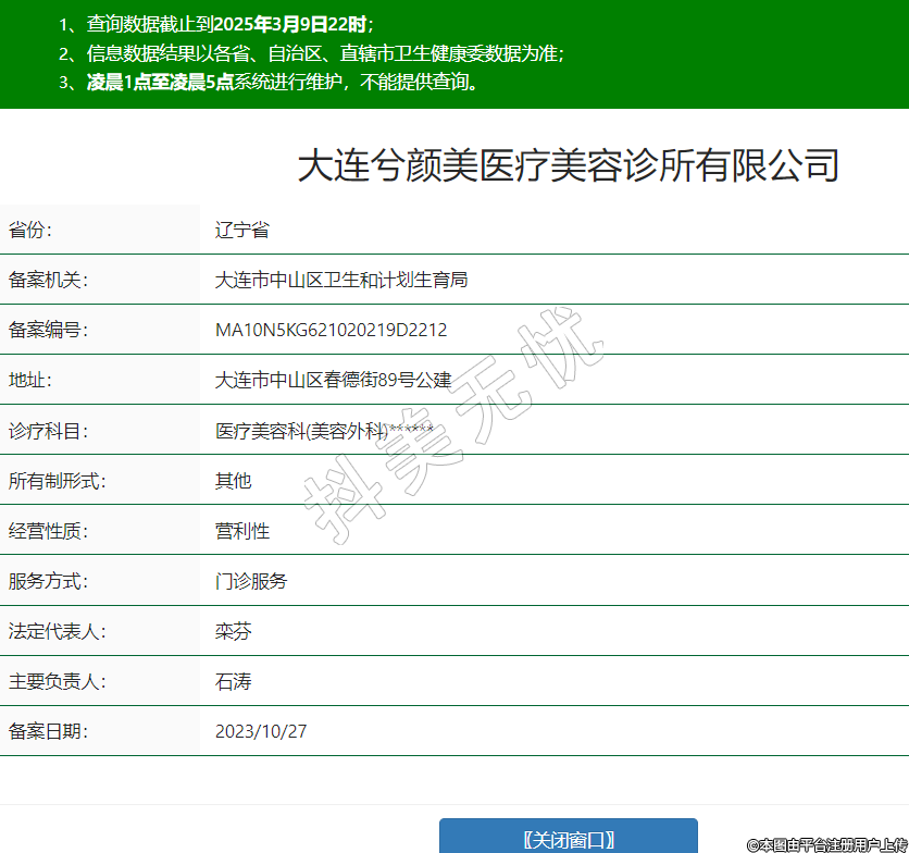 大連兮顏美醫(yī)療美容診所有限公司,診療科目:醫(yī)療美容科(美容外科)******