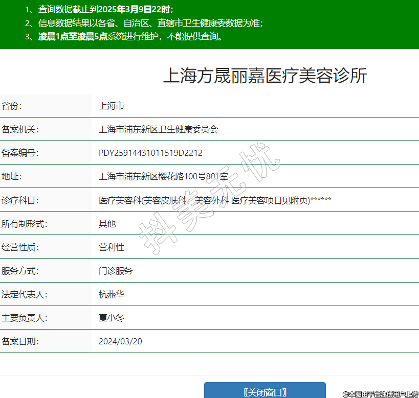上海方晟麗嘉醫(yī)療美容診所,診療科目:醫(yī)療美容科(美容皮膚科、美容外科 醫(yī)療美容項目見附頁)******
