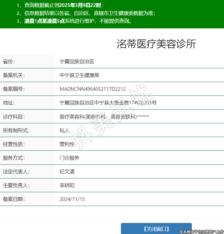 中寧縣洺蒂醫(yī)療美容診所,診療科目:醫(yī)療美容科(美容外科、美容皮膚科)******