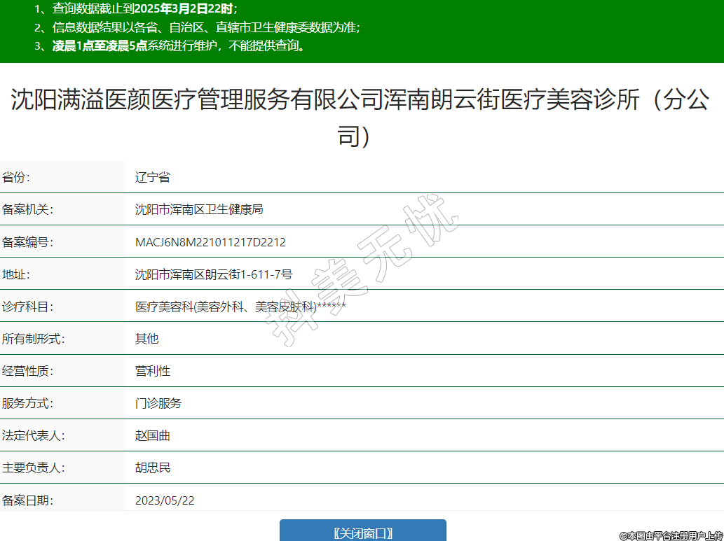 沈陽(yáng)滿溢醫(yī)顏醫(yī)療管理服務(wù)有限公司渾南朗云街醫(yī)療美容診所(分公司)