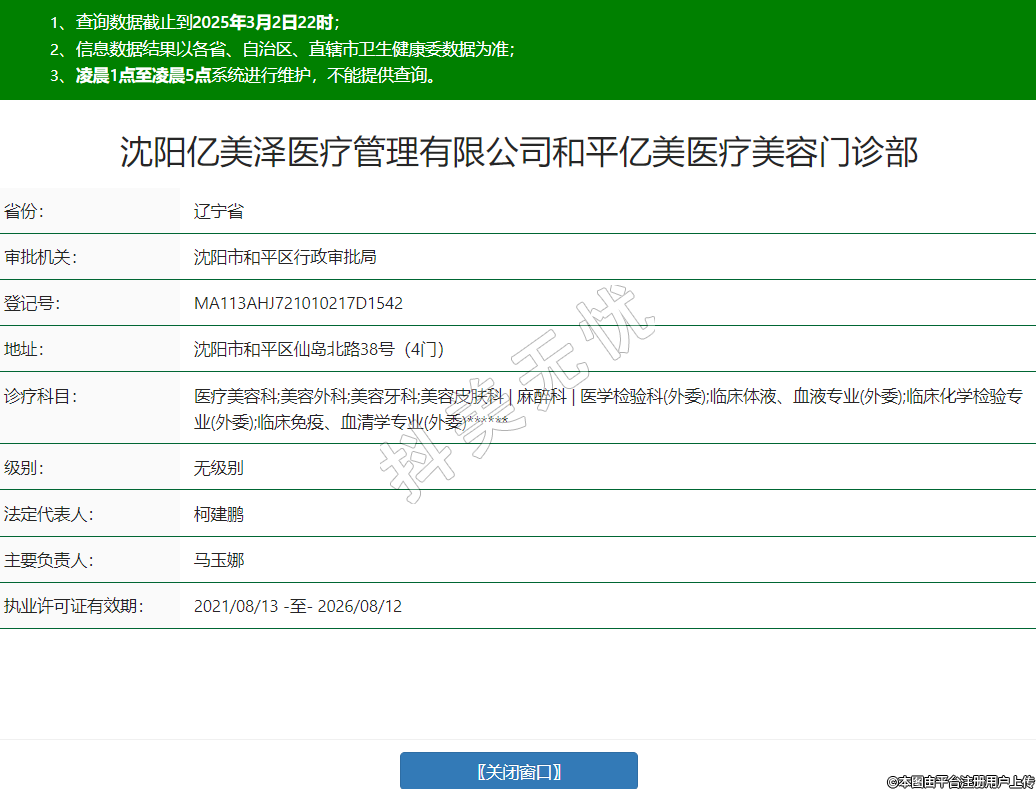 沈陽億美澤醫(yī)療管理有限公司和平億美醫(yī)療美容門診部