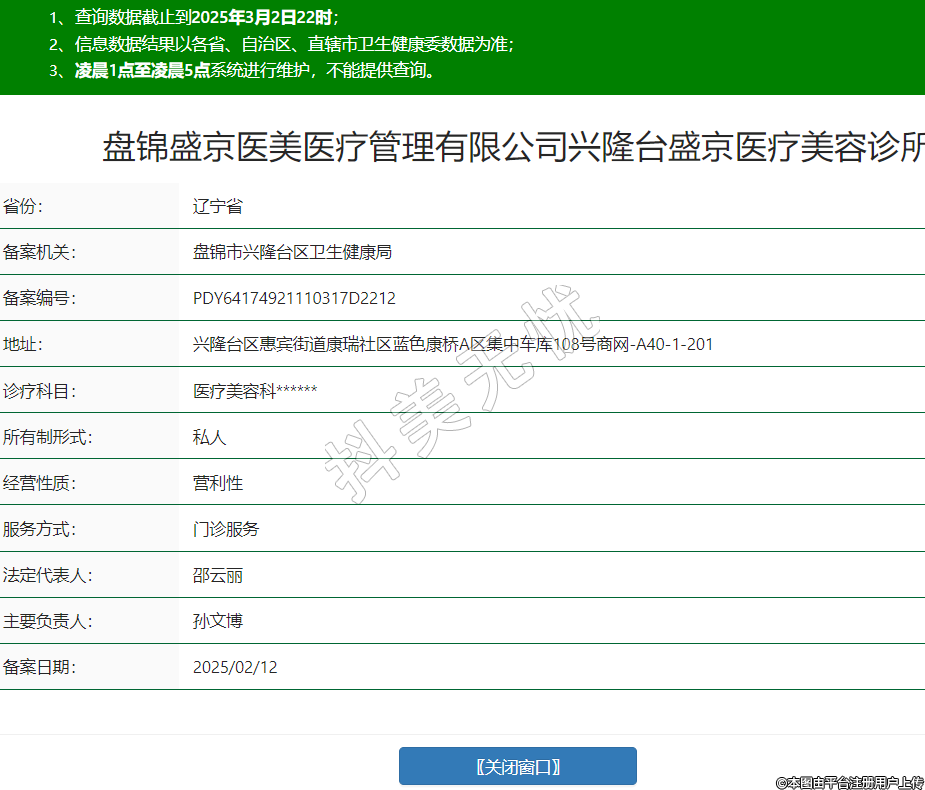 盤錦盛京醫(yī)美醫(yī)療管理有限公司興隆臺(tái)盛京醫(yī)療美容診所