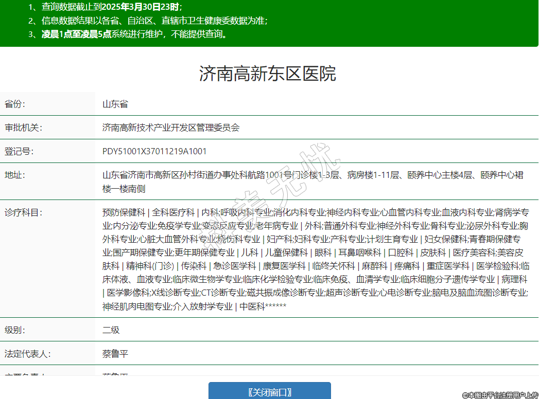 山東省濟(jì)南市高新區(qū)孫村街道辦事處科航路1001號門診樓1-3層、病房樓1-11層、頤養(yǎng)中心主樓4層、頤養(yǎng)中心裙樓一樓南側(cè)