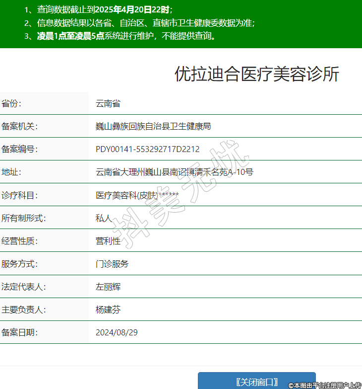 巍山優(yōu)拉迪合醫(yī)療美容,診療科目:醫(yī)療美容科(皮膚)******