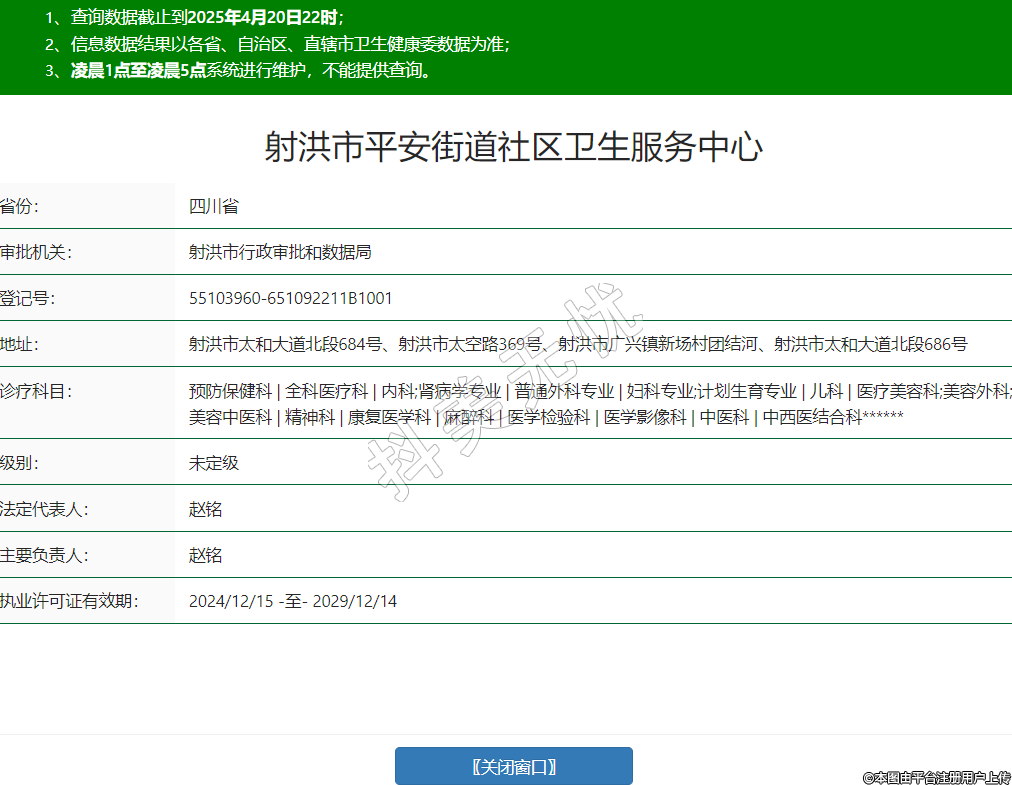 預(yù)防保健科 | 全科醫(yī)療科 | 內(nèi)科;腎病學(xué)專業(yè) | 普通外科專業(yè) | 婦科專業(yè);計(jì)劃生育專業(yè) | 兒科 | 醫(yī)療美容科;美容外科;美容中醫(yī)科 | 精神科 | 康復(fù)醫(yī)學(xué)科 | 麻醉科 | 醫(yī)學(xué)檢驗(yàn)科 | 醫(yī)學(xué)影像科 | 中醫(yī)科 | 中西醫(yī)結(jié)合科******