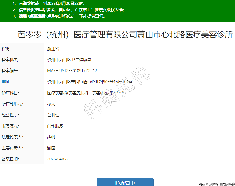 芭零零(杭州)醫(yī)療管理有限公司蕭山市心北路醫(yī)療美容診所