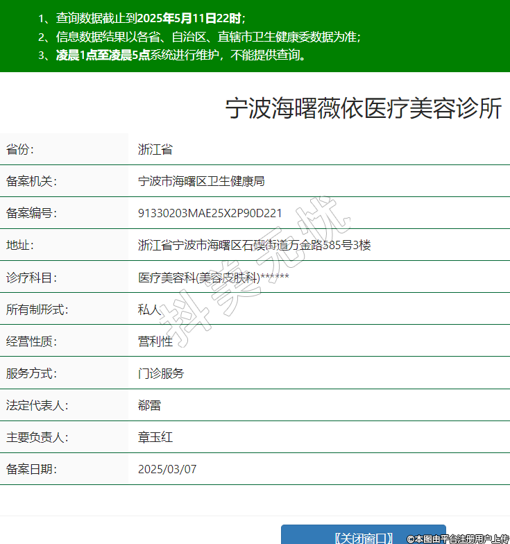 省份:浙江省備案機(jī)關(guān):寧波市海曙區(qū)衛(wèi)生健康局備案編號:91330203MAE25X2P90D221地址:浙江省寧波市海曙區(qū)石碶街道萬金路585號3樓診療科目:醫(yī)療美容科(美容皮膚科)******所有制形式:私人經(jīng)營性質(zhì):營利性服務(wù)方式:門診服務(wù)法定代表人:郗雷主要負(fù)責(zé)人:章玉紅備案日期:2025/03/07 -