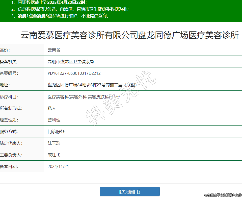 云南愛慕醫(yī)療美容診所有限公司盤龍同德廣場(chǎng)醫(yī)療美容診所