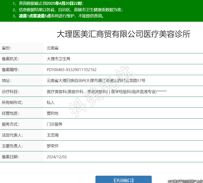大理醫(yī)美匯醫(yī)療美容,診療科目:醫(yī)療美容科(美容外科、美容皮膚科) | 醫(yī)學檢驗科(臨床血液專業(yè))******