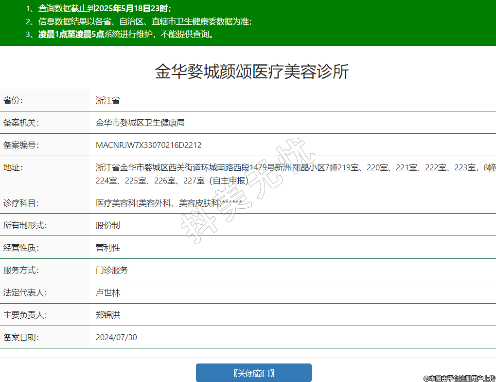 省份:浙江省備案機(jī)關(guān):金華市婺城區(qū)衛(wèi)生健康局備案編號(hào):MACNRJW7X33070216D2212地址:浙江省金華市婺城區(qū)西關(guān)街道環(huán)城南路西段1479號(hào)新洲·麗晶小區(qū)7幢219室、220室、221室、222室、223室,8幢224室、225室、226室、227室(自主申報(bào))診療科目:醫(yī)療美容科(美容外科、美容皮膚科)******所有制形式:股份制經(jīng)營(yíng)性質(zhì):營(yíng)利性服務(wù)方式:門(mén)診服務(wù)法定代表人:盧世林主要負(fù)責(zé)人:鄭錦洪備案日期:2024/07/30 -
