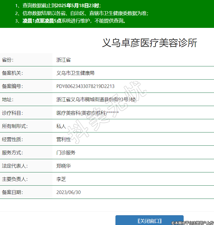 省份:浙江省備案機(jī)關(guān):義烏市衛(wèi)生健康局備案編號(hào):PDY80623433078219D2213地址:浙江省義烏市稠城街道縣前街93號(hào)3樓診療科目:醫(yī)療美容科(美容皮膚科)******所有制形式:私人經(jīng)營(yíng)性質(zhì):營(yíng)利性服務(wù)方式:門(mén)診服務(wù)法定代表人:鄭曉華主要負(fù)責(zé)人:李芝備案日期:2023/06/30 -