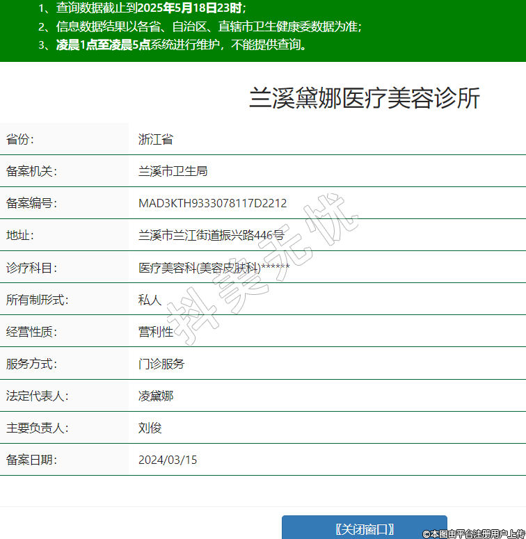 省份:浙江省備案機(jī)關(guān):蘭溪市衛(wèi)生局備案編號(hào):MAD3KTH9333078117D2212地址:蘭溪市蘭江街道振興路446號(hào)診療科目:醫(yī)療美容科(美容皮膚科)******所有制形式:私人經(jīng)營(yíng)性質(zhì):營(yíng)利性服務(wù)方式:門(mén)診服務(wù)法定代表人:凌黛娜主要負(fù)責(zé)人:劉俊備案日期:2024/03/15 -
