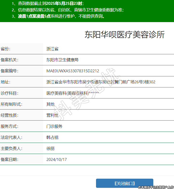 省份:浙江省備案機(jī)關(guān):東陽市衛(wèi)生健康局備案編號(hào):MAE0UWXA533078315D2212地址:浙江省金華市東陽市吳寧街道東街社區(qū)黌門前廣場26號(hào)3樓302診療科目:醫(yī)療美容科(美容皮膚科)******所有制形式:其他經(jīng)營性質(zhì):營利性服務(wù)方式:門診服務(wù)法定代表人:韓占祖主要負(fù)責(zé)人:徐麗備案日期:2024/10/17 -