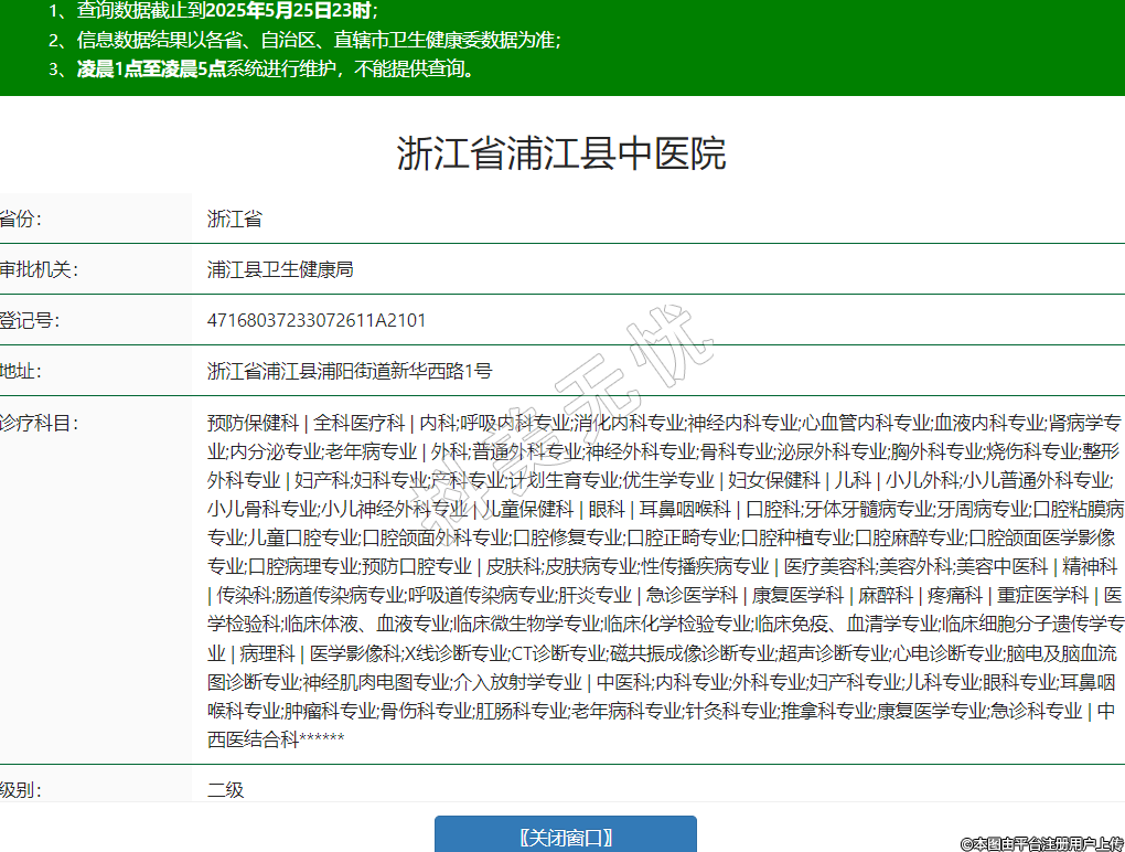 省份:浙江省審批機(jī)關(guān):浦江縣衛(wèi)生健康局登記號:47168037233072611A2101地址:浙江省浦江縣浦陽街道新華西路1號診療科目:預(yù)防保健科 | 全科醫(yī)療科 | 內(nèi)科;呼吸內(nèi)科專業(yè);消化內(nèi)科專業(yè);神經(jīng)內(nèi)科專業(yè);心血管內(nèi)科專業(yè);血液內(nèi)科專業(yè);腎病學(xué)專業(yè);內(nèi)分泌專業(yè);老年病專業(yè) | 外科;普通外科專業(yè);神經(jīng)外科專業(yè);骨科專業(yè);泌尿外科專業(yè);胸外科專業(yè);燒傷科專業(yè);整形外科專業(yè) | 婦產(chǎn)科;婦科專業(yè);產(chǎn)科專業(yè);計(jì)劃生育專業(yè);優(yōu)生學(xué)專業(yè) | 婦女保健科 | 兒科 | 小兒外科;小兒普通外科專業(yè);小兒骨科專業(yè);小兒神經(jīng)外科專業(yè) | 兒童保健科 | 眼科 | 耳鼻咽喉科 | 口腔科;牙體牙髓病專業(yè);牙周病專業(yè);口腔粘膜病專業(yè);兒童口腔專業(yè);口腔頜面外科專業(yè);口腔修復(fù)專業(yè);口腔正畸專業(yè);口腔種植專業(yè);口腔麻醉專業(yè);口腔頜面醫(yī)學(xué)影像專業(yè);口腔病理專業(yè);預(yù)防口腔專業(yè) | 皮膚科;皮膚病專業(yè);性傳播疾病專業(yè) | 醫(yī)療美容科;美容外科;美容中醫(yī)科 | 精神科 | 傳染科;腸道傳染病專業(yè);呼吸道傳染病專業(yè);肝炎專業(yè) | 急診醫(yī)學(xué)科 | 康復(fù)醫(yī)學(xué)科 | 麻醉科 | 疼痛科 | 重癥醫(yī)學(xué)科 | 醫(yī)學(xué)檢驗(yàn)科;臨床體液、血液專業(yè);臨床微生物學(xué)專業(yè);臨床化學(xué)檢驗(yàn)專業(yè);臨床免疫、血清學(xué)專業(yè);臨床細(xì)胞分子遺傳學(xué)專業(yè) | 病理科 | 醫(yī)學(xué)影像科;X線診斷專業(yè);CT診斷專業(yè);磁共振成像診斷專業(yè);超聲診斷專業(yè);心電診斷專業(yè);腦電及腦血流圖診斷專業(yè);神經(jīng)肌肉電圖專業(yè);介入放射學(xué)專業(yè) | 中醫(yī)科;內(nèi)科專業(yè);外科專業(yè);婦產(chǎn)科專業(yè);兒科專業(yè);眼科專業(yè);耳鼻咽喉科專業(yè);腫瘤科專業(yè);骨傷科專業(yè);肛腸科專業(yè);老年病科專業(yè);針灸科專業(yè);推拿科專業(yè);康復(fù)醫(yī)學(xué)專業(yè);急診科專業(yè) | 中西醫(yī)結(jié)合科******級別:二級法定代表人:潘文雙主要負(fù)責(zé)人:潘文雙執(zhí)業(yè)許可證有效期:2024/04/29 -至- 2029/04/28 -