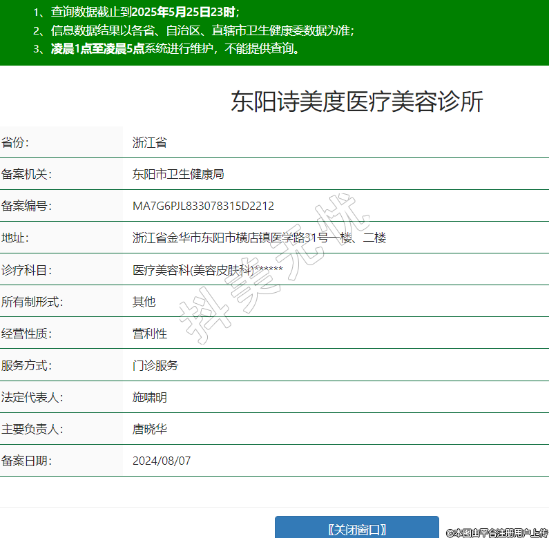 省份:浙江省備案機(jī)關(guān):東陽市衛(wèi)生健康局備案編號(hào):MA7G6PJL833078315D2212地址:浙江省金華市東陽市橫店鎮(zhèn)醫(yī)學(xué)路31號(hào)一樓、二樓診療科目:醫(yī)療美容科(美容皮膚科)******所有制形式:其他經(jīng)營(yíng)性質(zhì):營(yíng)利性服務(wù)方式:門診服務(wù)法定代表人:施嘯明主要負(fù)責(zé)人:唐曉華備案日期:2024/08/07 -