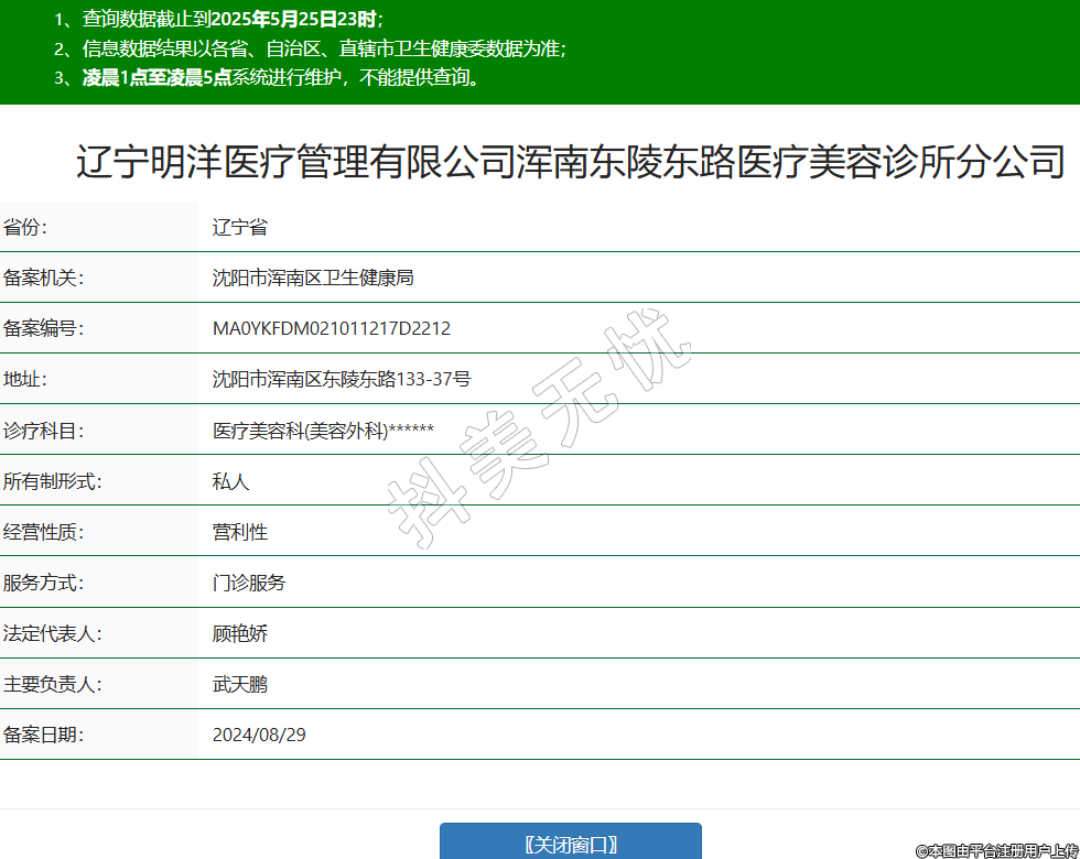 遼寧明洋醫(yī)療管理有限公司渾南東陵東路醫(yī)療美容診所分公司