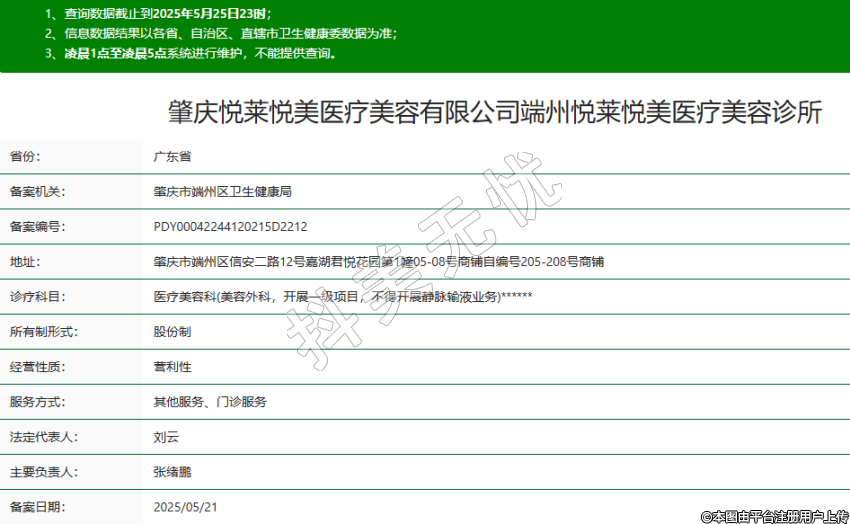 省份:廣東省備案機關(guān):肇慶市端州區(qū)衛(wèi)生健康局備案編號:PDY00042244120215D2212地址:肇慶市端州區(qū)信安二路12號嘉湖君悅花園第1幢05-08號商鋪自編號205-208號商鋪診療科目:醫(yī)療美容科(美容外科,開展一級項目,不得開展靜脈輸液業(yè)務(wù))******所有制形式:股份制經(jīng)營性質(zhì):營利性服務(wù)方式:其他服務(wù)、門診服務(wù)法定代表人:劉云主要負責(zé)人:張緒鵬備案日期:2025/05/21 -