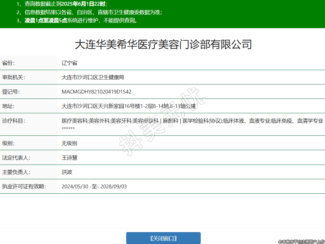 大連華美希華醫(yī)療美容,診療科目:醫(yī)療美容科;美容外科;美容牙科;美容皮膚科 | 麻醉科 | 醫(yī)學(xué)檢驗(yàn)科(協(xié)議);臨床體液、血液專業(yè);臨床免疫、血清學(xué)專業(yè)******