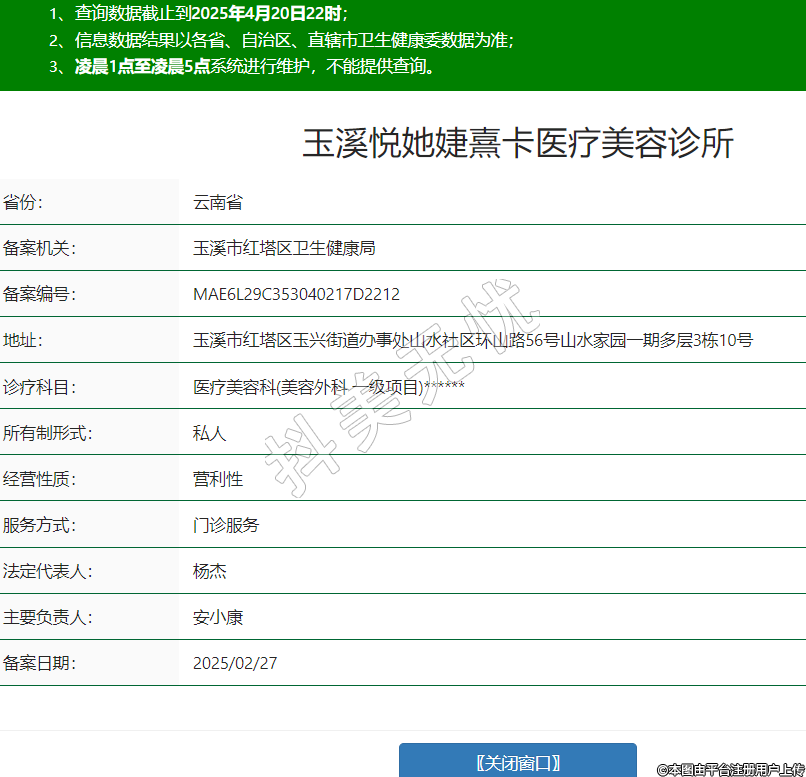 玉溪悅她婕熹卡醫(yī)療美容,診療科目:醫(yī)療美容科(美容外科 一級項目)******