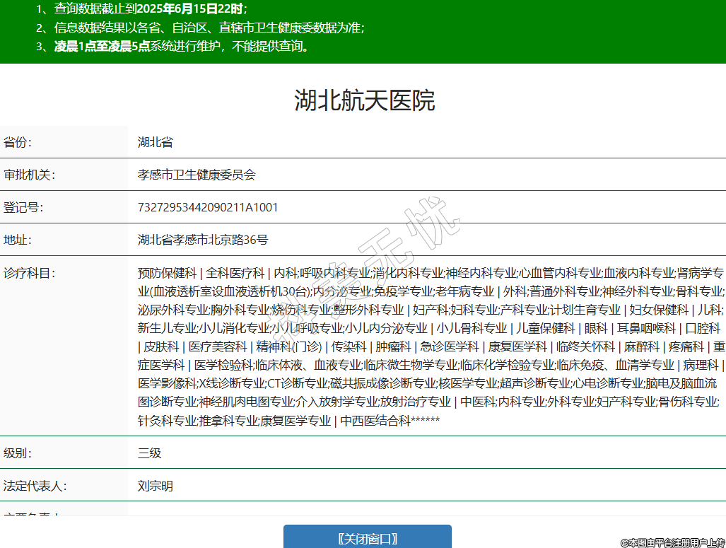 省份:湖北省審批機(jī)關(guān):孝感市衛(wèi)生健康委員會(huì)登記號(hào):73272953442090211A1001地址:湖北省孝感市北京路36號(hào)診療科目:預(yù)防保健科 | 全科醫(yī)療科 | 內(nèi)科;呼吸內(nèi)科專(zhuān)業(yè);消化內(nèi)科專(zhuān)業(yè);神經(jīng)內(nèi)科專(zhuān)業(yè);心血管內(nèi)科專(zhuān)業(yè);血液內(nèi)科專(zhuān)業(yè);腎病學(xué)專(zhuān)業(yè)(血液透析室設(shè)血液透析機(jī)30臺(tái));內(nèi)分泌專(zhuān)業(yè);免疫學(xué)專(zhuān)業(yè);老年病專(zhuān)業(yè) | 外科;普通外科專(zhuān)業(yè);神經(jīng)外科專(zhuān)業(yè);骨科專(zhuān)業(yè);泌尿外科專(zhuān)業(yè);胸外科專(zhuān)業(yè);燒傷科專(zhuān)業(yè);整形外科專(zhuān)業(yè) | 婦產(chǎn)科;婦科專(zhuān)業(yè);產(chǎn)科專(zhuān)業(yè);計(jì)劃生育專(zhuān)業(yè) | 婦女保健科 | 兒科;新生兒專(zhuān)業(yè);小兒消化專(zhuān)業(yè);小兒呼吸專(zhuān)業(yè);小兒內(nèi)分泌專(zhuān)業(yè) | 小兒骨科專(zhuān)業(yè) | 兒童保健科 | 眼科 | 耳鼻咽喉科 | 口腔科 | 皮膚科 | 醫(yī)療美容科 | 精神科(門(mén)診) | 傳染科 | 腫瘤科 | 急診醫(yī)學(xué)科 | 康復(fù)醫(yī)學(xué)科 | 臨終關(guān)懷科 | 麻醉科 | 疼痛科 | 重癥醫(yī)學(xué)科 | 醫(yī)學(xué)檢驗(yàn)科;臨床體液、血液專(zhuān)業(yè);臨床微生物學(xué)專(zhuān)業(yè);臨床化學(xué)檢驗(yàn)專(zhuān)業(yè);臨床免疫、血清學(xué)專(zhuān)業(yè) | 病理科 | 醫(yī)學(xué)影像科;X線(xiàn)診斷專(zhuān)業(yè);CT診斷專(zhuān)業(yè);磁共振成像診斷專(zhuān)業(yè);核醫(yī)學(xué)專(zhuān)業(yè);超聲診斷專(zhuān)業(yè);心電診斷專(zhuān)業(yè);腦電及腦血流圖診斷專(zhuān)業(yè);神經(jīng)肌肉電圖專(zhuān)業(yè);介入放射學(xué)專(zhuān)業(yè);放射治療專(zhuān)業(yè) | 中醫(yī)科;內(nèi)科專(zhuān)業(yè);外科專(zhuān)業(yè);婦產(chǎn)科專(zhuān)業(yè);骨傷科專(zhuān)業(yè);針灸科專(zhuān)業(yè);推拿科專(zhuān)業(yè);康復(fù)醫(yī)學(xué)專(zhuān)業(yè) | 中西醫(yī)結(jié)合科******級(jí)別:三級(jí)法定代表人:劉宗明主要負(fù)責(zé)人:執(zhí)業(yè)許可證有效期:2011/11/20 -至- 2026/11/19 -