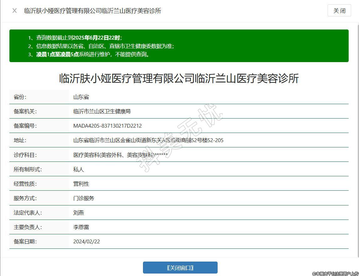 臨沂膚小婭醫(yī)療管理有限公司臨沂蘭山醫(yī)療美容診所