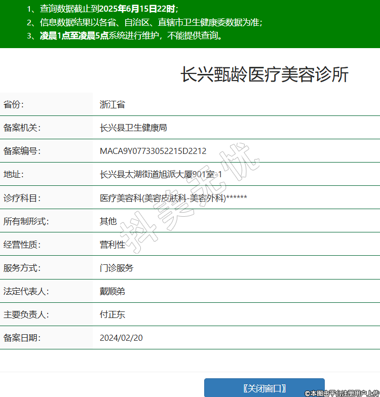 省份:浙江省備案機關:長興縣衛(wèi)生健康局備案編號:MACA9Y07733052215D2212地址:長興縣太湖街道旭派大廈901室-1診療科目:醫(yī)療美容科(美容皮膚科-美容外科)******所有制形式:其他經營性質:營利性服務方式:門診服務法定代表人:戴順弟主要負責人:付正東備案日期:2024/02/20 -