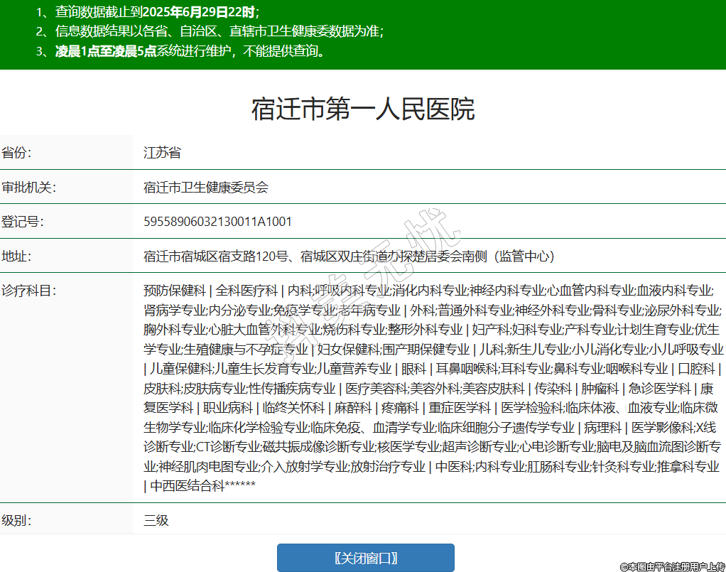 省份:江蘇省審批機關(guān):宿遷市衛(wèi)生健康委員會登記號:59558906032130011A1001地址:宿遷市宿城區(qū)宿支路120號、宿城區(qū)雙莊街道辦探楚居委會南側(cè)(監(jiān)管中心)診療科目:預(yù)防保健科 | 全科醫(yī)療科 | 內(nèi)科;呼吸內(nèi)科專業(yè);消化內(nèi)科專業(yè);神經(jīng)內(nèi)科專業(yè);心血管內(nèi)科專業(yè);血液內(nèi)科專業(yè);腎病學(xué)專業(yè);內(nèi)分泌專業(yè);免疫學(xué)專業(yè);老年病專業(yè) | 外科;普通外科專業(yè);神經(jīng)外科專業(yè);骨科專業(yè);泌尿外科專業(yè);胸外科專業(yè);心臟大血管外科專業(yè);燒傷科專業(yè);整形外科專業(yè) | 婦產(chǎn)科;婦科專業(yè);產(chǎn)科專業(yè);計劃生育專業(yè);優(yōu)生學(xué)專業(yè);生殖健康與不孕癥專業(yè) | 婦女保健科;圍產(chǎn)期保健專業(yè) | 兒科;新生兒專業(yè);小兒消化專業(yè);小兒呼吸專業(yè) | 兒童保健科;兒童生長發(fā)育專業(yè);兒童營養(yǎng)專業(yè) | 眼科 | 耳鼻咽喉科;耳科專業(yè);鼻科專業(yè);咽喉科專業(yè) | 口腔科 | 皮膚科;皮膚病專業(yè);性傳播疾病專業(yè) | 醫(yī)療美容科;美容外科;美容皮膚科 | 傳染科 | 腫瘤科 | 急診醫(yī)學(xué)科 | 康復(fù)醫(yī)學(xué)科 | 職業(yè)病科 | 臨終關(guān)懷科 | 麻醉科 | 疼痛科 | 重癥醫(yī)學(xué)科 | 醫(yī)學(xué)檢驗科;臨床體液、血液專業(yè);臨床微生物學(xué)專業(yè);臨床化學(xué)檢驗專業(yè);臨床免疫、血清學(xué)專業(yè);臨床細胞分子遺傳學(xué)專業(yè) | 病理科 | 醫(yī)學(xué)影像科;X線診斷專業(yè);CT診斷專業(yè);磁共振成像診斷專業(yè);核醫(yī)學(xué)專業(yè);超聲診斷專業(yè);心電診斷專業(yè);腦電及腦血流圖診斷專業(yè);神經(jīng)肌肉電圖專業(yè);介入放射學(xué)專業(yè);放射治療專業(yè) | 中醫(yī)科;內(nèi)科專業(yè);肛腸科專業(yè);針灸科專業(yè);推拿科專業(yè) | 中西醫(yī)結(jié)合科******級別:三級法定代表人:劉強暉主要負責(zé)人:陳濤執(zhí)業(yè)許可證有效期:2016/09/30 -至- 2031/09/29 -