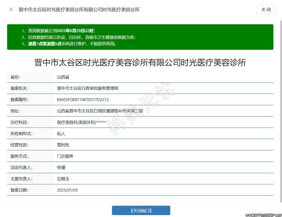 晉中市太谷區(qū)時(shí)光醫(yī)療美容診所有限公司時(shí)光醫(yī)療美容診所