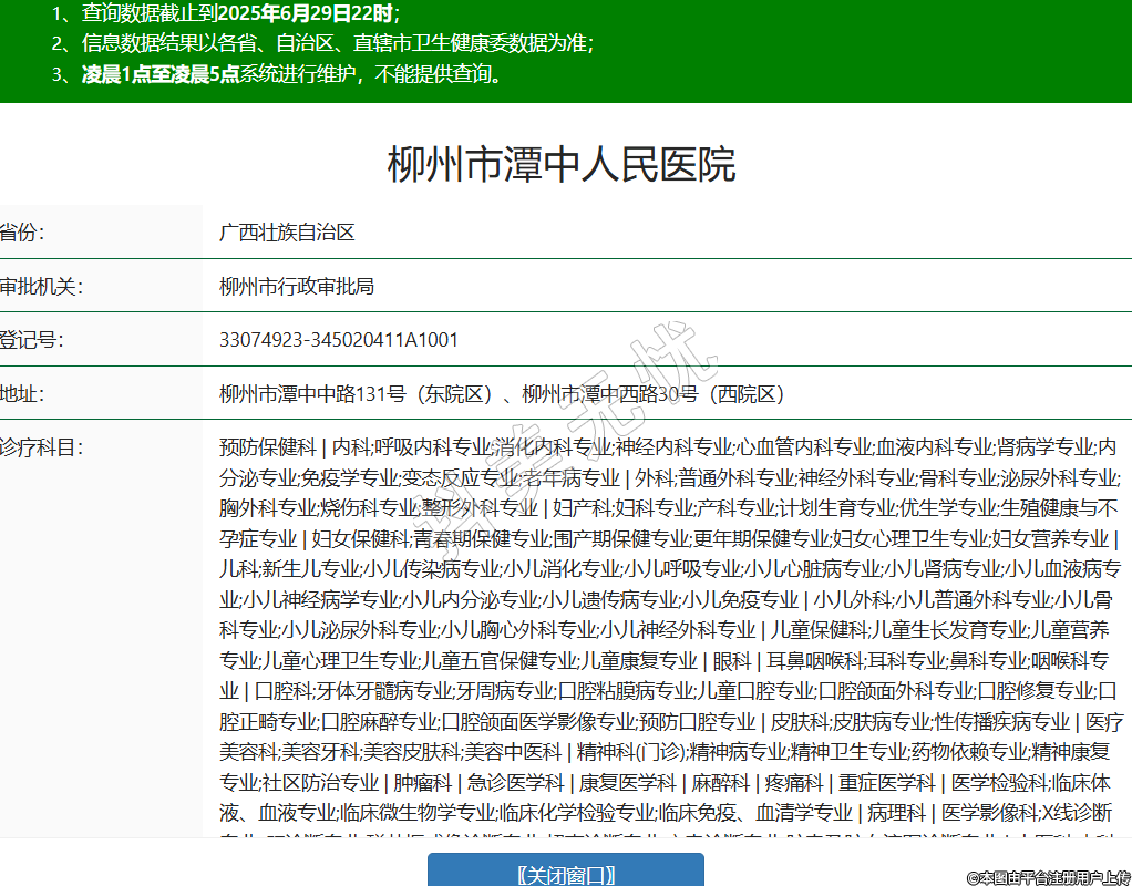 省份:廣西壯族自治區(qū)審批機(jī)關(guān):柳州市行政審批局登記號(hào):33074923-345020411A1001地址:柳州市潭中中路131號(hào)(東院區(qū))、柳州市潭中西路30號(hào)(西院區(qū))診療科目:預(yù)防保健科 | 內(nèi)科;呼吸內(nèi)科專業(yè);消化內(nèi)科專業(yè);神經(jīng)內(nèi)科專業(yè);心血管內(nèi)科專業(yè);血液內(nèi)科專業(yè);腎病學(xué)專業(yè);內(nèi)分泌專業(yè);免疫學(xué)專業(yè);變態(tài)反應(yīng)專業(yè);老年病專業(yè) | 外科;普通外科專業(yè);神經(jīng)外科專業(yè);骨科專業(yè);泌尿外科專業(yè);胸外科專業(yè);燒傷科專業(yè);整形外科專業(yè) | 婦產(chǎn)科;婦科專業(yè);產(chǎn)科專業(yè);計(jì)劃生育專業(yè);優(yōu)生學(xué)專業(yè);生殖健康與不孕癥專業(yè) | 婦女保健科;青春期保健專業(yè);圍產(chǎn)期保健專業(yè);更年期保健專業(yè);婦女心理衛(wèi)生專業(yè);婦女營(yíng)養(yǎng)專業(yè) | 兒科;新生兒專業(yè);小兒傳染病專業(yè);小兒消化專業(yè);小兒呼吸專業(yè);小兒心臟病專業(yè);小兒腎病專業(yè);小兒血液病專業(yè);小兒神經(jīng)病學(xué)專業(yè);小兒內(nèi)分泌專業(yè);小兒遺傳病專業(yè);小兒免疫專業(yè) | 小兒外科;小兒普通外科專業(yè);小兒骨科專業(yè);小兒泌尿外科專業(yè);小兒胸心外科專業(yè);小兒神經(jīng)外科專業(yè) | 兒童保健科;兒童生長(zhǎng)發(fā)育專業(yè);兒童營(yíng)養(yǎng)專業(yè);兒童心理衛(wèi)生專業(yè);兒童五官保健專業(yè);兒童康復(fù)專業(yè) | 眼科 | 耳鼻咽喉科;耳科專業(yè);鼻科專業(yè);咽喉科專業(yè) | 口腔科;牙體牙髓病專業(yè);牙周病專業(yè);口腔粘膜病專業(yè);兒童口腔專業(yè);口腔頜面外科專業(yè);口腔修復(fù)專業(yè);口腔正畸專業(yè);口腔麻醉專業(yè);口腔頜面醫(yī)學(xué)影像專業(yè);預(yù)防口腔專業(yè) | 皮膚科;皮膚病專業(yè);性傳播疾病專業(yè) | 醫(yī)療美容科;美容牙科;美容皮膚科;美容中醫(yī)科 | 精神科(門診);精神病專業(yè);精神衛(wèi)生專業(yè);藥物依賴專業(yè);精神康復(fù)專業(yè);社區(qū)防治專業(yè) | 腫瘤科 | 急診醫(yī)學(xué)科 | 康復(fù)醫(yī)學(xué)科 | 麻醉科 | 疼痛科 | 重癥醫(yī)學(xué)科 | 醫(yī)學(xué)檢驗(yàn)科;臨床體液、血液專業(yè);臨床微生物學(xué)專業(yè);臨床化學(xué)檢驗(yàn)專業(yè);臨床免疫、血清學(xué)專業(yè) | 病理科 | 醫(yī)學(xué)影像科;X線診斷專業(yè);CT診斷專業(yè);磁共振成像診斷專業(yè);超聲診斷專業(yè);心電診斷專業(yè);腦電及腦血流圖診斷專業(yè) | 中醫(yī)科;內(nèi)科專業(yè);外科專業(yè);婦產(chǎn)科專業(yè);兒科專業(yè);骨傷科專業(yè);肛腸科專業(yè);老年病科專業(yè);針灸科專業(yè);推拿科專業(yè);康復(fù)醫(yī)學(xué)專業(yè) | 中西醫(yī)結(jié)合科******級(jí)別:二級(jí)法定代表人:劉媛主要負(fù)責(zé)人:劉媛執(zhí)業(yè)許可證有效期:2024/08/29 -至- 2033/01/10 -