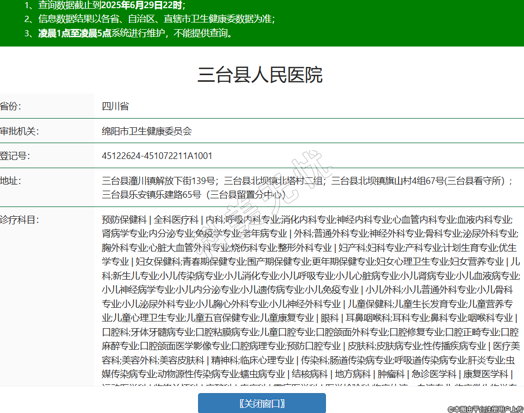 省份:四川省審批機(jī)關(guān):綿陽市衛(wèi)生健康委員會登記號:45122624-451072211A1001地址:三臺縣潼川鎮(zhèn)解放下街139號;三臺縣北壩鎮(zhèn)北塔村二組;三臺縣北壩鎮(zhèn)旗山村4組67號(三臺縣看守所);三臺縣樂安鎮(zhèn)樂建路65號(三臺縣留置分中心)診療科目:預(yù)防保健科 | 全科醫(yī)療科 | 內(nèi)科;呼吸內(nèi)科專業(yè);消化內(nèi)科專業(yè);神經(jīng)內(nèi)科專業(yè);心血管內(nèi)科專業(yè);血液內(nèi)科專業(yè);腎病學(xué)專業(yè);內(nèi)分泌專業(yè);免疫學(xué)專業(yè);老年病專業(yè) | 外科;普通外科專業(yè);神經(jīng)外科專業(yè);骨科專業(yè);泌尿外科專業(yè);胸外科專業(yè);心臟大血管外科專業(yè);燒傷科專業(yè);整形外科專業(yè) | 婦產(chǎn)科;婦科專業(yè);產(chǎn)科專業(yè);計(jì)劃生育專業(yè);優(yōu)生學(xué)專業(yè) | 婦女保健科;青春期保健專業(yè);圍產(chǎn)期保健專業(yè);更年期保健專業(yè);婦女心理衛(wèi)生專業(yè);婦女營養(yǎng)專業(yè) | 兒科;新生兒專業(yè);小兒傳染病專業(yè);小兒消化專業(yè);小兒呼吸專業(yè);小兒心臟病專業(yè);小兒腎病專業(yè);小兒血液病專業(yè);小兒神經(jīng)病學(xué)專業(yè);小兒內(nèi)分泌專業(yè);小兒遺傳病專業(yè);小兒免疫專業(yè) | 小兒外科;小兒普通外科專業(yè);小兒骨科專業(yè);小兒泌尿外科專業(yè);小兒胸心外科專業(yè);小兒神經(jīng)外科專業(yè) | 兒童保健科;兒童生長發(fā)育專業(yè);兒童營養(yǎng)專業(yè);兒童心理衛(wèi)生專業(yè);兒童五官保健專業(yè);兒童康復(fù)專業(yè) | 眼科 | 耳鼻咽喉科;耳科專業(yè);鼻科專業(yè);咽喉科專業(yè) | 口腔科;牙體牙髓病專業(yè);口腔粘膜病專業(yè);兒童口腔專業(yè);口腔頜面外科專業(yè);口腔修復(fù)專業(yè);口腔正畸專業(yè);口腔麻醉專業(yè);口腔頜面醫(yī)學(xué)影像專業(yè);口腔病理專業(yè);預(yù)防口腔專業(yè) | 皮膚科;皮膚病專業(yè);性傳播疾病專業(yè) | 醫(yī)療美容科;美容外科;美容皮膚科 | 精神科;臨床心理專業(yè) | 傳染科;腸道傳染病專業(yè);呼吸道傳染病專業(yè);肝炎專業(yè);蟲媒傳染病專業(yè);動物源性傳染病專業(yè);蠕蟲病專業(yè) | 結(jié)核病科 | 地方病科 | 腫瘤科 | 急診醫(yī)學(xué)科 | 康復(fù)醫(yī)學(xué)科 | 運(yùn)動醫(yī)學(xué)科 | 臨終關(guān)懷科 | 麻醉科 | 疼痛科 | 重癥醫(yī)學(xué)科 | 醫(yī)學(xué)檢驗(yàn)科;臨床體液、血液專業(yè);臨床微生物學(xué)專業(yè);臨床化學(xué)檢驗(yàn)專業(yè);臨床免疫、血清學(xué)專業(yè);臨床細(xì)胞分子遺傳學(xué)專業(yè) | 病理科 | 醫(yī)學(xué)影像科;X線診斷專業(yè);CT診斷專業(yè);磁共振成像診斷專業(yè);超聲診斷專業(yè);心電診斷專業(yè);腦電及腦血流圖診斷專業(yè);神經(jīng)肌肉電圖專業(yè);介入放射學(xué)專業(yè);放射治療專業(yè) | 中醫(yī)科;內(nèi)科專業(yè);外科專業(yè);婦產(chǎn)科專業(yè);兒科專業(yè);皮膚科專業(yè);眼科專業(yè);耳鼻咽喉科專業(yè);口腔科專業(yè);腫瘤科專業(yè);骨傷科專業(yè);肛腸科專業(yè);老年病科專業(yè);針灸科專業(yè);推拿科專業(yè);康復(fù)醫(yī)學(xué)專業(yè);急診科專業(yè);預(yù)防保健科專業(yè) | 中西醫(yī)結(jié)合科******級別:三級法定代表人:周立遠(yuǎn)主要負(fù)責(zé)人:周立遠(yuǎn)執(zhí)業(yè)許可證有效期:2025/03/26 -至- 2039/04/29 -
