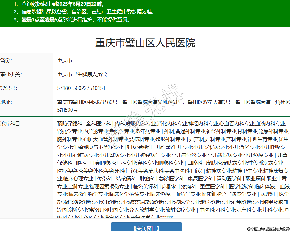 省份:重慶市審批機(jī)關(guān):重慶市衛(wèi)生健康委員會(huì)登記號(hào):571801500227510151地址:重慶市璧山區(qū)中醫(yī)院巷80號(hào)、璧山區(qū)璧城街道文風(fēng)路61號(hào)、璧山區(qū)雙星大道9號(hào)、璧山區(qū)璧城街道三角社區(qū)5組500號(hào)診療科目:預(yù)防保健科 | 全科醫(yī)療科 | 內(nèi)科;呼吸內(nèi)科專業(yè);消化內(nèi)科專業(yè);神經(jīng)內(nèi)科專業(yè);心血管內(nèi)科專業(yè);血液內(nèi)科專業(yè);腎病學(xué)專業(yè);內(nèi)分泌專業(yè);免疫學(xué)專業(yè);老年病專業(yè) | 外科;普通外科專業(yè);神經(jīng)外科專業(yè);骨科專業(yè);泌尿外科專業(yè);胸外科專業(yè);心臟大血管外科專業(yè);燒傷科專業(yè);整形外科專業(yè) | 婦產(chǎn)科;婦科專業(yè);產(chǎn)科專業(yè);計(jì)劃生育專業(yè);優(yōu)生學(xué)專業(yè);生殖健康與不孕癥專業(yè) | 婦女保健科 | 兒科;新生兒專業(yè);小兒傳染病專業(yè);小兒消化專業(yè);小兒呼吸專業(yè);小兒心臟病專業(yè);小兒腎病專業(yè);小兒神經(jīng)病學(xué)專業(yè);小兒內(nèi)分泌專業(yè);小兒遺傳病專業(yè);小兒免疫專業(yè) | 兒童保健科 | 眼科 | 耳鼻咽喉科;耳科專業(yè);鼻科專業(yè);咽喉科專業(yè) | 口腔科 | 皮膚科;皮膚病專業(yè);性傳播疾病專業(yè) | 醫(yī)療美容科;美容外科;美容牙科(門診);美容皮膚科;美容中醫(yī)科(門診) | 精神病專業(yè);精神衛(wèi)生專業(yè);精神康復(fù)專業(yè);臨床心理專業(yè) | 傳染科 | 結(jié)核病科 | 腫瘤科 | 急診醫(yī)學(xué)科 | 康復(fù)醫(yī)學(xué)科 | 運(yùn)動(dòng)醫(yī)學(xué)科 | 職業(yè)病科;職業(yè)中毒專業(yè);塵肺專業(yè);物理因素?fù)p傷專業(yè) | 臨終關(guān)懷科 | 麻醉科 | 疼痛科 | 重癥醫(yī)學(xué)科 | 醫(yī)學(xué)檢驗(yàn)科;臨床體液、血液專業(yè);臨床微生物學(xué)專業(yè);臨床化學(xué)檢驗(yàn)專業(yè);臨床免疫、血清學(xué)專業(yè);臨床細(xì)胞分子遺傳學(xué)專業(yè) | 病理科 | 醫(yī)學(xué)影像科;X線診斷專業(yè);CT診斷專業(yè);磁共振成像診斷專業(yè);核醫(yī)學(xué)專業(yè);超聲診斷專業(yè);心電診斷專業(yè);腦電及腦血流圖診斷專業(yè);神經(jīng)肌肉電圖專業(yè);介入放射學(xué)專業(yè);放射治療專業(yè) | 中醫(yī)科;內(nèi)科專業(yè);婦產(chǎn)科專業(yè);兒科專業(yè);腫瘤科專業(yè);針灸科專業(yè);推拿科專業(yè);康復(fù)醫(yī)學(xué)專業(yè)******級(jí)別:三級(jí)法定代表人:郭進(jìn)軍主要負(fù)責(zé)人:郭進(jìn)軍執(zhí)業(yè)許可證有效期:2016/04/12 -至- 2031/04/11 -