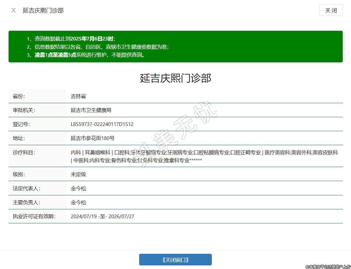 延邊慶熙醫(yī)療美容門診部成立于2015年,位于延吉市參花街180號,是一家以醫(yī)學美容科、口腔美容科為核心的專業(yè)醫(yī)美機構,依托資深醫(yī)師團隊及先進診療設備,開展面部精雕、抗衰老管理、微創(chuàng)整形、牙齒美白矯正等多元化項目,秉承“自然健康,精準塑美”理念,院內打造無菌化診療環(huán)境與私密服務空間,嚴格遵循醫(yī)療質控標準,注重術前評估與術后護理。