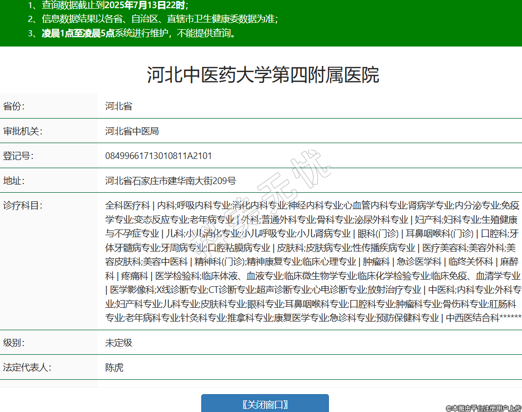 省份:河北省審批機關:河北省中醫(yī)局登記號:08499661713010811A2101地址:河北省石家莊市建華南大街209號診療科目:全科醫(yī)療科 | 內(nèi)科;呼吸內(nèi)科專業(yè);消化內(nèi)科專業(yè);神經(jīng)內(nèi)科專業(yè);心血管內(nèi)科專業(yè);腎病學專業(yè);內(nèi)分泌專業(yè);免疫學專業(yè);變態(tài)反應專業(yè);老年病專業(yè) | 外科;普通外科專業(yè);骨科專業(yè);泌尿外科專業(yè) | 婦產(chǎn)科;婦科專業(yè);生殖健康與不孕癥專業(yè) | 兒科;小兒消化專業(yè);小兒呼吸專業(yè);小兒腎病專業(yè) | 眼科(門診) | 耳鼻咽喉科(門診) | 口腔科;牙體牙髓病專業(yè);牙周病專業(yè);口腔粘膜病專業(yè) | 皮膚科;皮膚病專業(yè);性傳播疾病專業(yè) | 醫(yī)療美容科;美容外科;美容皮膚科;美容中醫(yī)科 | 精神科(門診);精神康復專業(yè);臨床心理專業(yè) | 腫瘤科 | 急診醫(yī)學科 | 臨終關懷科 | 麻醉科 | 疼痛科 | 醫(yī)學檢驗科;臨床體液、血液專業(yè);臨床微生物學專業(yè);臨床化學檢驗專業(yè);臨床免疫、血清學專業(yè) | 醫(yī)學影像科;X線診斷專業(yè);CT診斷專業(yè);超聲診斷專業(yè);心電診斷專業(yè);放射治療專業(yè) | 中醫(yī)科;內(nèi)科專業(yè);外科專業(yè);婦產(chǎn)科專業(yè);兒科專業(yè);皮膚科專業(yè);眼科專業(yè);耳鼻咽喉科專業(yè);口腔科專業(yè);腫瘤科專業(yè);骨傷科專業(yè);肛腸科專業(yè);老年病科專業(yè);針灸科專業(yè);推拿科專業(yè);康復醫(yī)學專業(yè);急診科專業(yè);預防保健科專業(yè) | 中西醫(yī)結合科******級別:未定級法定代表人:陳虎主要負責人:執(zhí)業(yè)許可證有效期:2022/06/16 -至- 2030/03/22 -