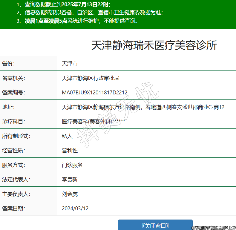 天津靜海瑞禾醫(yī)療美容診所,診療科目:醫(yī)療美容科(美容外科)******