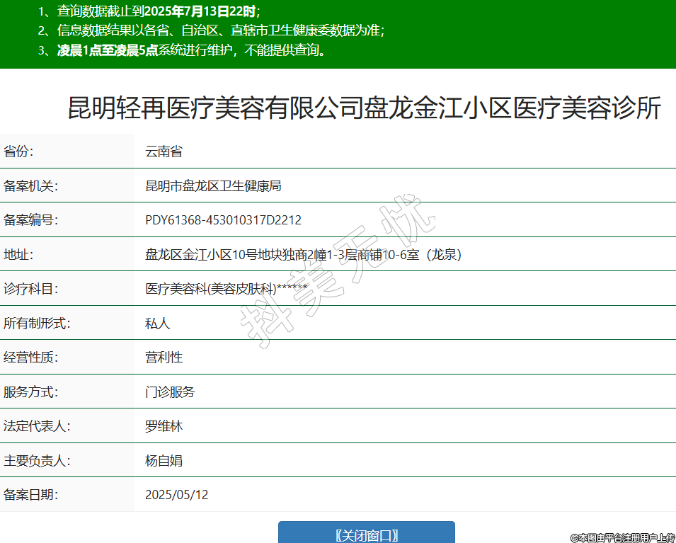 昆明輕再醫(yī)療美容有限公司盤(pán)龍金江小區(qū)醫(yī)療美容診所