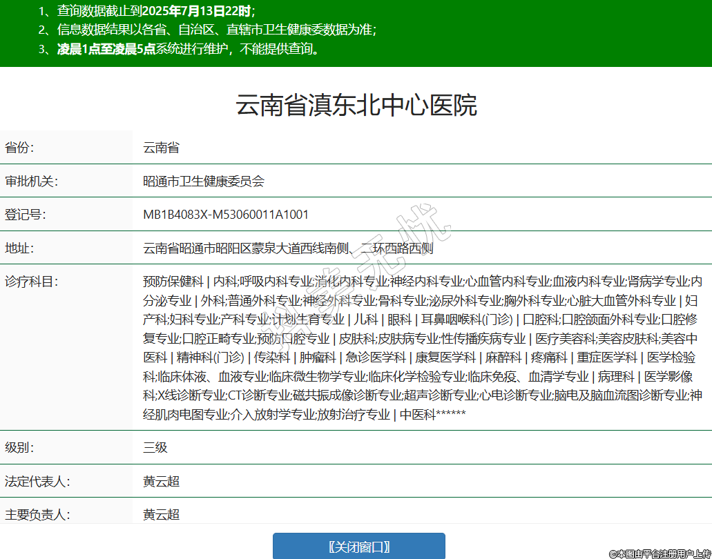 省份:云南省審批機關:昭通市衛(wèi)生健康委員會登記號:MB1B4083X-M53060011A1001地址:云南省昭通市昭陽區(qū)蒙泉大道西線南側、二環(huán)西路西側診療科目:預防保健科 | 內科;呼吸內科專業(yè);消化內科專業(yè);神經內科專業(yè);心血管內科專業(yè);血液內科專業(yè);腎病學專業(yè);內分泌專業(yè) | 外科;普通外科專業(yè);神經外科專業(yè);骨科專業(yè);泌尿外科專業(yè);胸外科專業(yè);心臟大血管外科專業(yè) | 婦產科;婦科專業(yè);產科專業(yè);計劃生育專業(yè) | 兒科 | 眼科 | 耳鼻咽喉科(門診) | 口腔科;口腔頜面外科專業(yè);口腔修復專業(yè);口腔正畸專業(yè);預防口腔專業(yè) | 皮膚科;皮膚病專業(yè);性傳播疾病專業(yè) | 醫(yī)療美容科;美容皮膚科;美容中醫(yī)科 | 精神科(門診) | 傳染科 | 腫瘤科 | 急診醫(yī)學科 | 康復醫(yī)學科 | 麻醉科 | 疼痛科 | 重癥醫(yī)學科 | 醫(yī)學檢驗科;臨床體液、血液專業(yè);臨床微生物學專業(yè);臨床化學檢驗專業(yè);臨床免疫、血清學專業(yè) | 病理科 | 醫(yī)學影像科;X線診斷專業(yè);CT診斷專業(yè);磁共振成像診斷專業(yè);超聲診斷專業(yè);心電診斷專業(yè);腦電及腦血流圖診斷專業(yè);神經肌肉電圖專業(yè);介入放射學專業(yè);放射治療專業(yè) | 中醫(yī)科******級別:三級法定代表人:黃云超主要負責人:黃云超執(zhí)業(yè)許可證有效期:2024/11/10 -至- 2039/11/09 -