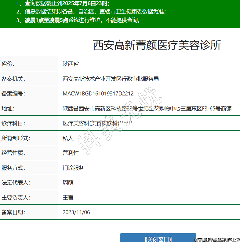 省份:陜西省備案機關(guān):西安高新技術(shù)產(chǎn)業(yè)開發(fā)區(qū)行政審批服務(wù)局備案編號:MACW1BGD161019317D2212地址:陜西省西安市高新區(qū)科技路33號世紀金花購物中心三層?xùn)|區(qū)F3-65號商鋪診療科目:醫(yī)療美容科(美容皮膚科)******所有制形式:私人經(jīng)營性質(zhì):營利性服務(wù)方式:門診服務(wù)法定代表人:周萌主要負責(zé)人:王言備案日期:2023/11/06 -