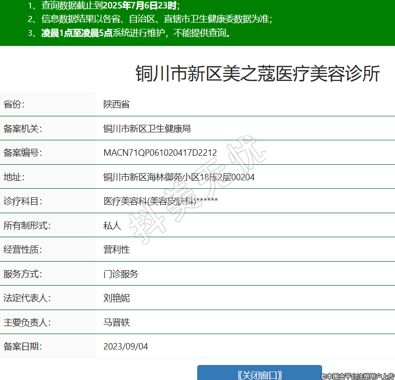 省份:陜西省備案機關(guān):銅川市新區(qū)衛(wèi)生健康局備案編號:MACN71QP061020417D2212地址:銅川市新區(qū)海林御苑小區(qū)18棟2層00204診療科目:醫(yī)療美容科(美容皮膚科)******所有制形式:私人經(jīng)營性質(zhì):營利性服務(wù)方式:門診服務(wù)法定代表人:劉艷妮主要負責人:馬晉軼備案日期:2023/09/04 -
