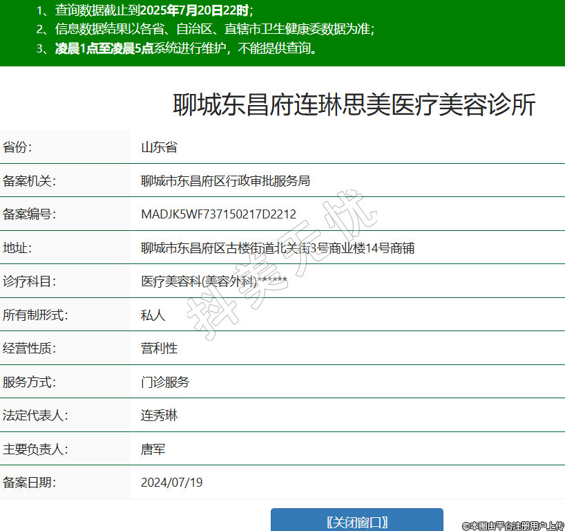 省份:山東省備案機關(guān):聊城市東昌府區(qū)行政審批服務局備案編號:MADJK5WF737150217D2212地址:聊城市東昌府區(qū)古樓街道北關(guān)街3號商業(yè)樓14號商鋪診療科目:醫(yī)療美容科(美容外科)******所有制形式:私人經(jīng)營性質(zhì):營利性服務方式:門診服務法定代表人:連秀琳主要負責人:唐軍備案日期:2024/07/19 -