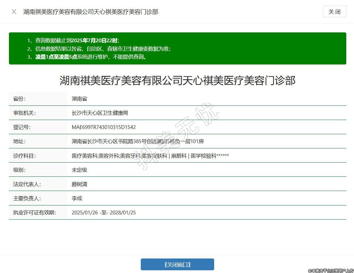 湖南祺美醫(yī)療美容有限公司天心祺美醫(yī)療美容門診部