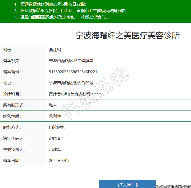 省份:浙江省備案機(jī)關(guān):寧波市海曙區(qū)衛(wèi)生健康局備案編號:913302033169672346D221地址:寧波市海曙區(qū)倉橋街29號診療科目:醫(yī)療美容科(美容皮膚科)******所有制形式:私人經(jīng)營性質(zhì):營利性服務(wù)方式:門診服務(wù)法定代表人:夏風(fēng)琴主要負(fù)責(zé)人:呂建軍備案日期:2024/08/09 -