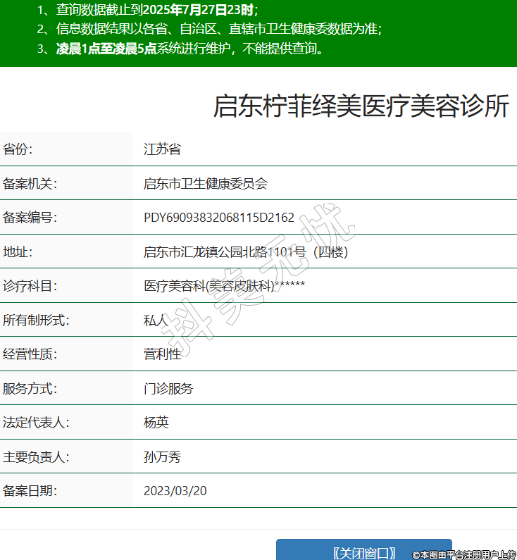 省份:江蘇省備案機(jī)關(guān):啟東市衛(wèi)生健康委員會(huì)備案編號(hào):PDY69093832068115D2162地址:啟東市匯龍鎮(zhèn)公園北路1101號(hào)(四樓)診療科目:醫(yī)療美容科(美容皮膚科)******所有制形式:私人經(jīng)營(yíng)性質(zhì):營(yíng)利性服務(wù)方式:門(mén)診服務(wù)法定代表人:楊英主要負(fù)責(zé)人:孫萬(wàn)秀備案日期:2023/03/20 -