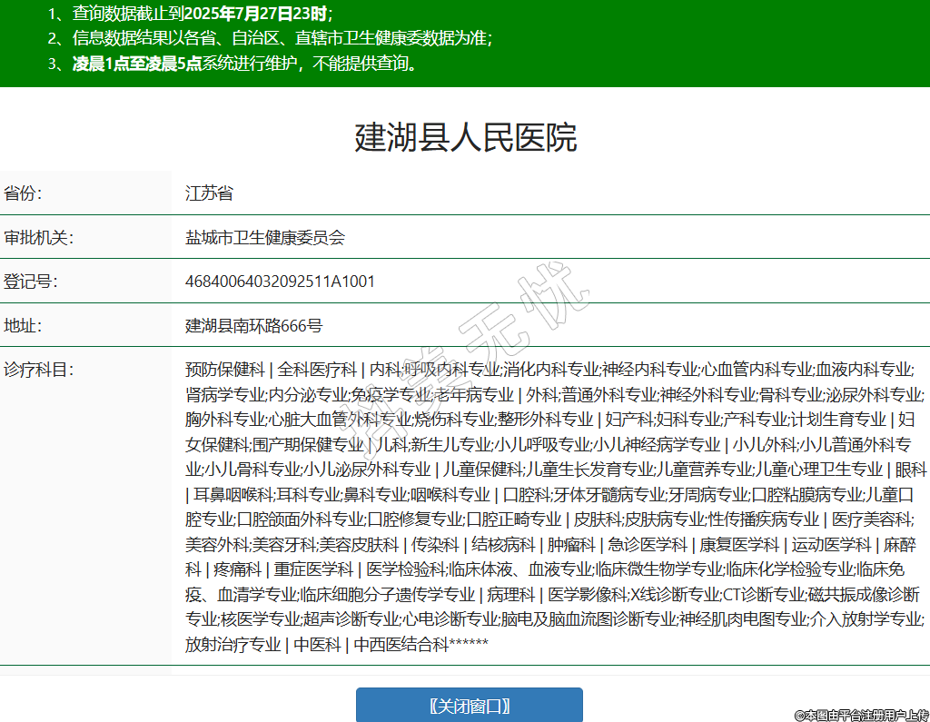 省份:江蘇省審批機關(guān):鹽城市衛(wèi)生健康委員會登記號:46840064032092511A1001地址:建湖縣南環(huán)路666號診療科目:預(yù)防保健科 | 全科醫(yī)療科 | 內(nèi)科;呼吸內(nèi)科專業(yè);消化內(nèi)科專業(yè);神經(jīng)內(nèi)科專業(yè);心血管內(nèi)科專業(yè);血液內(nèi)科專業(yè);腎病學(xué)專業(yè);內(nèi)分泌專業(yè);免疫學(xué)專業(yè);老年病專業(yè) | 外科;普通外科專業(yè);神經(jīng)外科專業(yè);骨科專業(yè);泌尿外科專業(yè);胸外科專業(yè);心臟大血管外科專業(yè);燒傷科專業(yè);整形外科專業(yè) | 婦產(chǎn)科;婦科專業(yè);產(chǎn)科專業(yè);計劃生育專業(yè) | 婦女保健科;圍產(chǎn)期保健專業(yè) | 兒科;新生兒專業(yè);小兒呼吸專業(yè);小兒神經(jīng)病學(xué)專業(yè) | 小兒外科;小兒普通外科專業(yè);小兒骨科專業(yè);小兒泌尿外科專業(yè) | 兒童保健科;兒童生長發(fā)育專業(yè);兒童營養(yǎng)專業(yè);兒童心理衛(wèi)生專業(yè) | 眼科 | 耳鼻咽喉科;耳科專業(yè);鼻科專業(yè);咽喉科專業(yè) | 口腔科;牙體牙髓病專業(yè);牙周病專業(yè);口腔粘膜病專業(yè);兒童口腔專業(yè);口腔頜面外科專業(yè);口腔修復(fù)專業(yè);口腔正畸專業(yè) | 皮膚科;皮膚病專業(yè);性傳播疾病專業(yè) | 醫(yī)療美容科;美容外科;美容牙科;美容皮膚科 | 傳染科 | 結(jié)核病科 | 腫瘤科 | 急診醫(yī)學(xué)科 | 康復(fù)醫(yī)學(xué)科 | 運動醫(yī)學(xué)科 | 麻醉科 | 疼痛科 | 重癥醫(yī)學(xué)科 | 醫(yī)學(xué)檢驗科;臨床體液、血液專業(yè);臨床微生物學(xué)專業(yè);臨床化學(xué)檢驗專業(yè);臨床免疫、血清學(xué)專業(yè);臨床細胞分子遺傳學(xué)專業(yè) | 病理科 | 醫(yī)學(xué)影像科;X線診斷專業(yè);CT診斷專業(yè);磁共振成像診斷專業(yè);核醫(yī)學(xué)專業(yè);超聲診斷專業(yè);心電診斷專業(yè);腦電及腦血流圖診斷專業(yè);神經(jīng)肌肉電圖專業(yè);介入放射學(xué)專業(yè);放射治療專業(yè) | 中醫(yī)科 | 中西醫(yī)結(jié)合科******級別:三級法定代表人:薛成俊主要負責(zé)人:薛成俊執(zhí)業(yè)許可證有效期:2019/04/01 -至- 2034/03/31 -