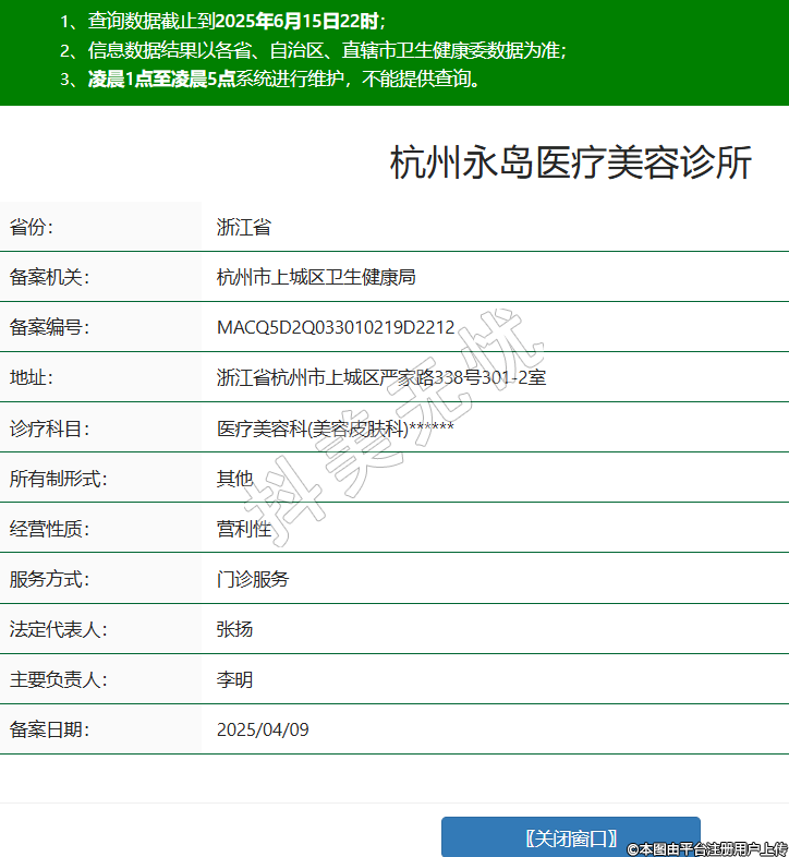 杭州永島醫(yī)療美容診所,診療科目:醫(yī)療美容科(美容皮膚科)******