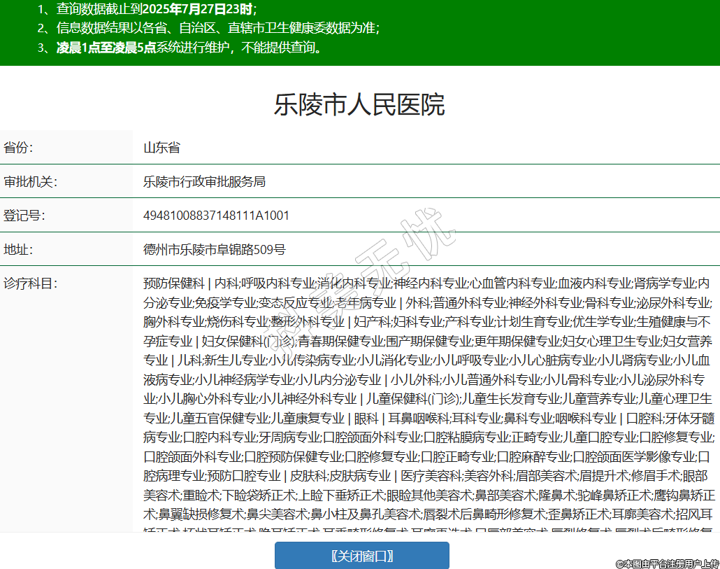 省份:山東省審批機關:樂陵市行政審批服務局登記號:49481008837148111A1001地址:德州市樂陵市阜錦路509號診療科目:預防保健科 | 內科;呼吸內科專業(yè);消化內科專業(yè);神經內科專業(yè);心血管內科專業(yè);血液內科專業(yè);腎病學專業(yè);內分泌專業(yè);免疫學專業(yè);變態(tài)反應專業(yè);老年病專業(yè) | 外科;普通外科專業(yè);神經外科專業(yè);骨科專業(yè);泌尿外科專業(yè);胸外科專業(yè);燒傷科專業(yè);整形外科專業(yè) | 婦產科;婦科專業(yè);產科專業(yè);計劃生育專業(yè);優(yōu)生學專業(yè);生殖健康與不孕癥專業(yè) | 婦女保健科(門診);青春期保健專業(yè);圍產期保健專業(yè);更年期保健專業(yè);婦女心理衛(wèi)生專業(yè);婦女營養(yǎng)專業(yè) | 兒科;新生兒專業(yè);小兒傳染病專業(yè);小兒消化專業(yè);小兒呼吸專業(yè);小兒心臟病專業(yè);小兒腎病專業(yè);小兒血液病專業(yè);小兒神經病學專業(yè);小兒內分泌專業(yè) | 小兒外科;小兒普通外科專業(yè);小兒骨科專業(yè);小兒泌尿外科專業(yè);小兒胸心外科專業(yè);小兒神經外科專業(yè) | 兒童保健科(門診);兒童生長發(fā)育專業(yè);兒童營養(yǎng)專業(yè);兒童心理衛(wèi)生專業(yè);兒童五官保健專業(yè);兒童康復專業(yè) | 眼科 | 耳鼻咽喉科;耳科專業(yè);鼻科專業(yè);咽喉科專業(yè) | 口腔科;牙體牙髓病專業(yè);口腔內科專業(yè);牙周病專業(yè);口腔頜面外科專業(yè);口腔粘膜病專業(yè);正畸專業(yè);兒童口腔專業(yè);口腔修復專業(yè);口腔頜面外科專業(yè);口腔預防保健專業(yè);口腔修復專業(yè);口腔正畸專業(yè);口腔麻醉專業(yè);口腔頜面醫(yī)學影像專業(yè);口腔病理專業(yè);預防口腔專業(yè) | 皮膚科;皮膚病專業(yè) | 醫(yī)療美容科;美容外科;眉部美容術;眉提升術;修眉手術;眼部美容術;重瞼術;下瞼袋矯正術;上瞼下垂矯正術;眼瞼其他美容術;鼻部美容術;隆鼻術;駝峰鼻矯正術;鷹鉤鼻矯正術;鼻翼缺損修復術;鼻尖美容術;鼻小柱及鼻孔美容術;唇裂術后鼻畸形修復術;歪鼻矯正術;耳廓美容術;招風耳矯正術;杯狀耳矯正術;隱耳矯正術;耳垂畸形修復術;耳廓再造術;口唇部美容術;唇裂修復術;唇裂術后畸形修復術;重唇美容術;唇峰、薄唇增厚美容術;唇珠美容術;口角成形術;酒窩成形術;唇系帶延長成形術;頜面部美容術;顳部填充術;顴部美容術;頦成形術;下頜角肥大矯正術;面部除皺術;額部除皺術;顳部除皺術;面頸部除皺術;中面部除皺術;額顳部除皺術;額顳面部除皺術;顳面頸部除皺術;全面頸部除皺術;內窺鏡除皺術;面部懸吊除皺術;乳房美容術;隆乳術;乳房肥大縮小術;乳頭內陷矯正術;乳頭肥大縮小術;乳房下垂矯正術;乳頭乳暈重建術;脂肪抽吸及腹壁成形術;負壓脂肪抽吸術;超聲脂肪抽吸術;電子吸脂術;注射器法吸脂術;腹壁成形術;會陰部美容術;處女膜修復術;陰道松弛縮緊術;陰蒂肥大縮小術;小陰唇肥大縮小術;包皮環(huán)切術;陰莖延長術;美容皮膚科;美容皮膚術(外科);診斷技術;真菌鏡檢技術;斑貼試驗技術;皮膚活檢術;治療技術;糖皮質激素皮損內注射;藥物加壓治療;外用藥物治療;光化學療法;美容皮膚術(內科);皮膚磨削術;酒渣鼻切割術;皮膚腫物切除術;拔甲術;刮除術;自體表皮移植術;腋臭手術;足病修治術;毛發(fā)移植術;美容醫(yī)療應用技術;物理美容治療術;激光美容治療術;高頻電美容治療;冷凍美容治療;其他物理美容治療;脫毛術;穿耳孔術;注射美容技術;A型肉毒毒素美容注射技術;皮膚(軟組織)注射(填充)美容;美容文飾技術;文眉技術;文眼線技術;文唇技術;不良文飾修復技術 | 精神科(門診) | 傳染科;腸道傳染病專業(yè);呼吸道傳染病專業(yè);肝炎專業(yè);蟲媒傳染病專業(yè);動物源性傳染病專業(yè);蠕蟲病專業(yè) | 結核病科 | 腫瘤科 | 急診醫(yī)學科 | 康復醫(yī)學科 | 臨終關懷科 | 麻醉科 | 疼痛科 | 重癥醫(yī)學科 | 醫(yī)學檢驗科;臨床體液、血液專業(yè);臨床微生物學專業(yè);臨床化學檢驗專業(yè);臨床免疫、血清學專業(yè);臨床細胞分子遺傳學專業(yè) | 病理科 | 醫(yī)學影像科;X線診斷專業(yè);CT診斷專業(yè);磁共振成像診斷專業(yè);超聲診斷專業(yè);心電診斷專業(yè);腦電及腦血流圖診斷專業(yè);神經肌肉電圖專業(yè);介入放射學專業(yè) | 中醫(yī)科;內科專業(yè);外科專業(yè);婦產科專業(yè);兒科專業(yè);皮膚科專業(yè);腫瘤科專業(yè);老年病科專業(yè);針灸科專業(yè);推拿科專業(yè);康復醫(yī)學專業(yè);預防保健科專業(yè) | 中西醫(yī)結合科(門診)******級別:二級法定代表人:王靜主要負責人:王靜執(zhí)業(yè)許可證有效期:2024/10/25 -至- 2035/09/10 -
