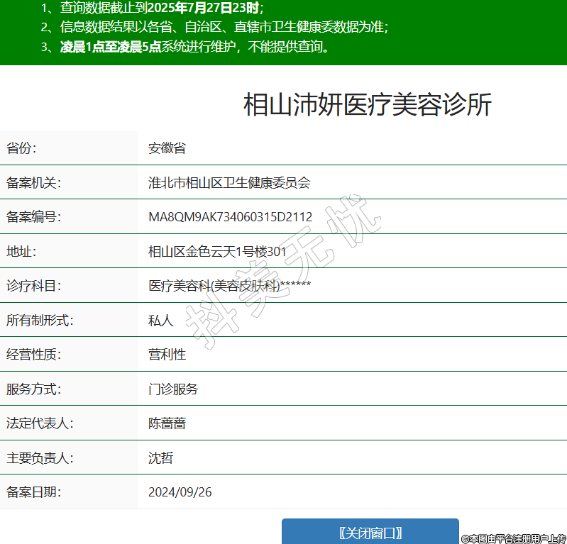 省份:安徽省備案機(jī)關(guān):淮北市相山區(qū)衛(wèi)生健康委員會(huì)備案編號(hào):MA8QM9AK734060315D2112地址:相山區(qū)金色云天1號(hào)樓301診療科目:醫(yī)療美容科(美容皮膚科)******所有制形式:私人經(jīng)營性質(zhì):營利性服務(wù)方式:門診服務(wù)法定代表人:陳薔薔主要負(fù)責(zé)人:沈哲備案日期:2024/09/26 -