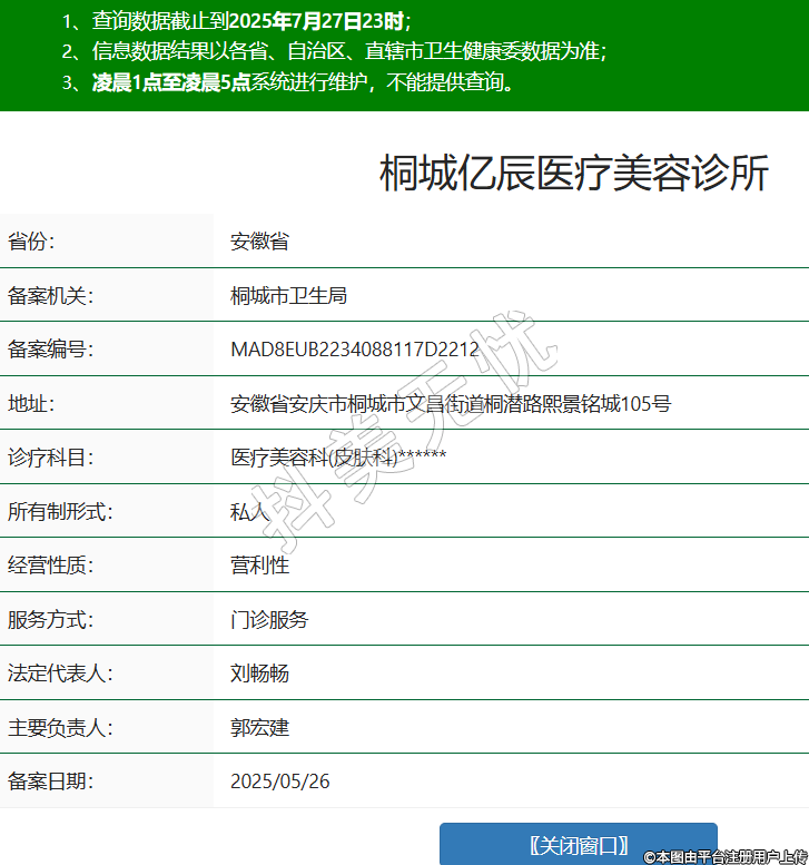 省份:安徽省備案機關(guān):桐城市衛(wèi)生局備案編號:MAD8EUB2234088117D2212地址:安徽省安慶市桐城市文昌街道桐潛路熙景銘城105號診療科目:醫(yī)療美容科(皮膚科)******所有制形式:私人經(jīng)營性質(zhì):營利性服務(wù)方式:門診服務(wù)法定代表人:劉暢暢主要負責(zé)人:郭宏建備案日期:2025/05/26 -