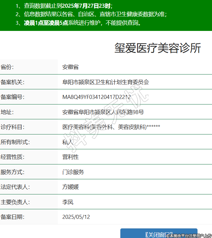 省份:安徽省備案機關:阜陽市潁泉區(qū)衛(wèi)生和計劃生育委員會備案編號:MA8Q49YF034120417D2212地址:安徽省阜陽市潁泉區(qū)人民東路98號診療科目:醫(yī)療美容科(美容外科、美容皮膚科)******所有制形式:私人經(jīng)營性質:營利性服務方式:門診服務法定代表人:方媛媛主要負責人:李鳳備案日期:2025/05/12 -