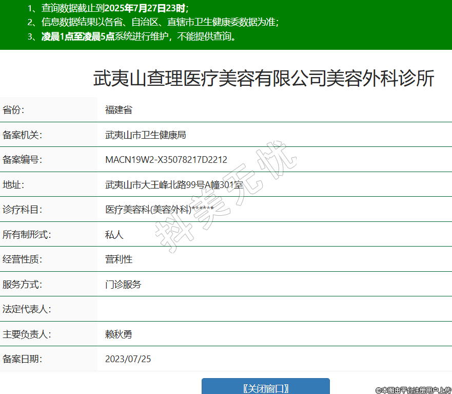 武夷山查理醫(yī)療美容有限公司美容外科診所,診療科目:醫(yī)療美容科(美容外科)******