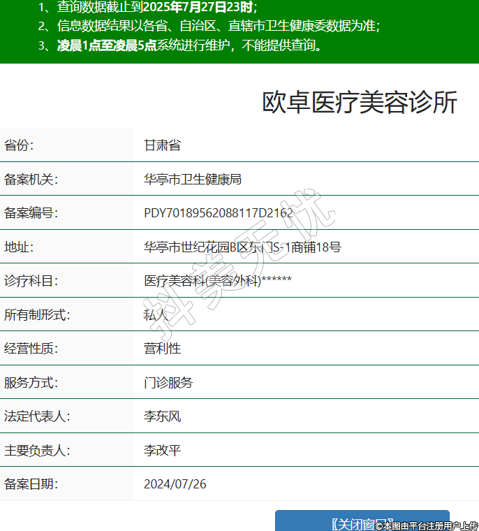 省份:甘肅省備案機(jī)關(guān):華亭市衛(wèi)生健康局備案編號(hào):PDY70189562088117D2162地址:華亭市世紀(jì)花園B區(qū)東門S-1商鋪18號(hào)診療科目:醫(yī)療美容科(美容外科)******所有制形式:私人經(jīng)營性質(zhì):營利性服務(wù)方式:門診服務(wù)法定代表人:李東風(fēng)主要負(fù)責(zé)人:李改平備案日期:2024/07/26 -